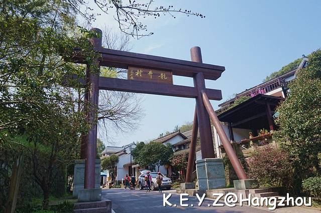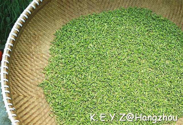 从九溪路出来,便是龙井村,这里家家有茶叶,户户能喝茶,小房子收拾的干干净净,门口支着炒茶的大铁锅,摆着晒满茶叶的大竹篾。