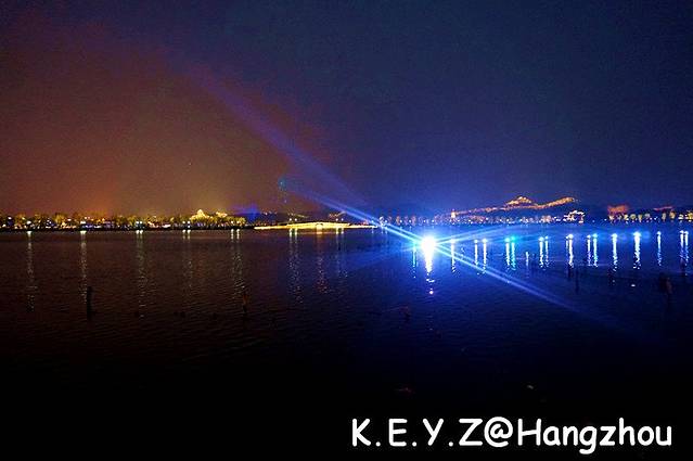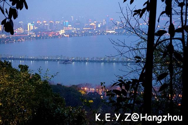 元阳台上可以眺望保俶塔,本来我们还想继续前进的,但是天已经完全黑了,怕路不好走,就放弃了。下山的路上,见到西湖上灯光绚烂,美不胜收,觉得也不虚此行了。