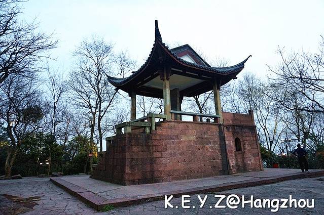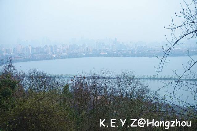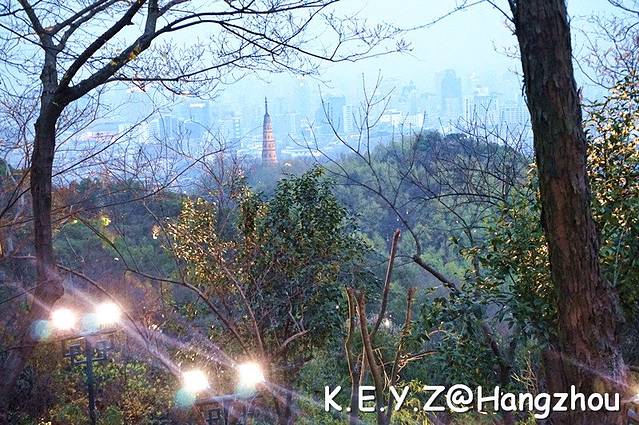 傍晚本来计划要到宝石山上看落日的,但是由于我们在湖边徘徊太久,开始爬山时,天色已经很晚了。虽然看不到夕阳了,我们还是按照计划登高眺望西湖。