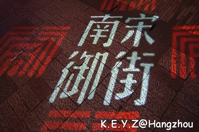 河坊街边上就是南宋御街,人少了很多,也安静许多,建筑都是仿古新修的,唯一的真正的古迹被透明的玻璃保护起来,如今的人们只能伸头看看,然后说“原来这就是南宋街道上的砖”,然后就将之抛诸脑后了。可是想想千年前的人们也是这样和我们踏着同样的路线逛街,这家超市原来可能是布庄,那家咖啡馆以前可能是茶楼,觉得也挺有意思的。