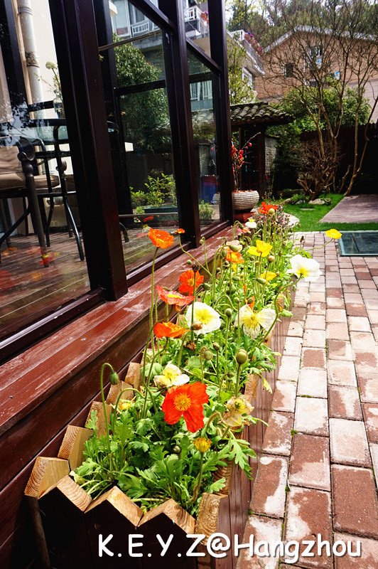 我们订的其中一间房在二楼,窗外就是一个美美的庭院,不用等待花开,因为花都开好了。