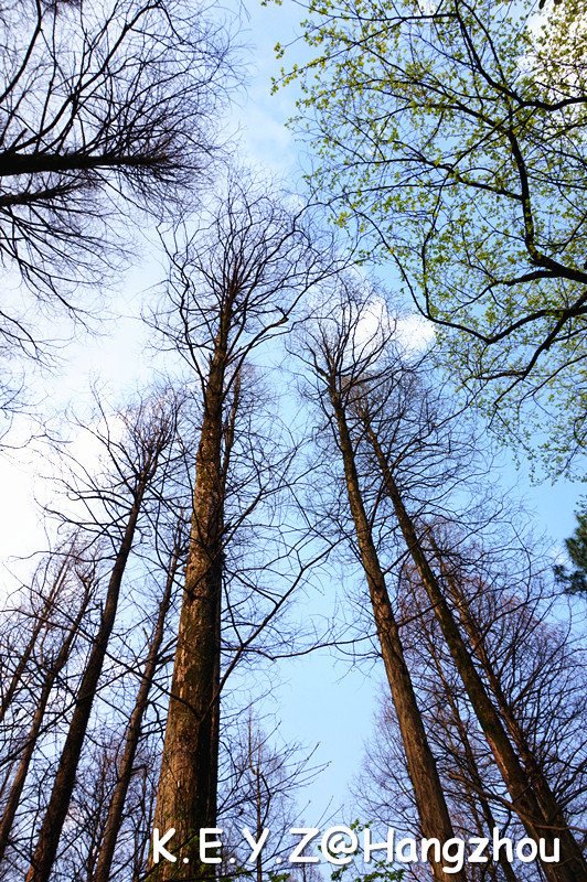 某个转角偶遇一片樱花林,孩子们在树下奔跑嬉戏,老人们在树下闲庭信步;一条小路转向一片水杉林,静静仰望那高大笔直的树干,默默感叹那飞速流逝的岁月,不知它们已经在这里伫立了多少年,有没有看尽这做城的荣辱兴衰;不知它们还可以在在这里伫立多少年,能不能陪伴这座城到地老天荒。