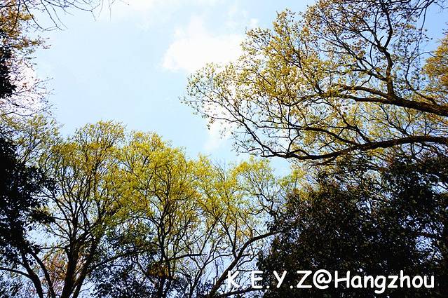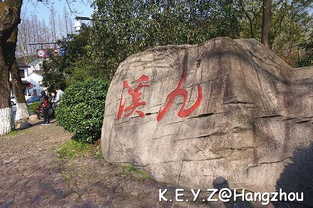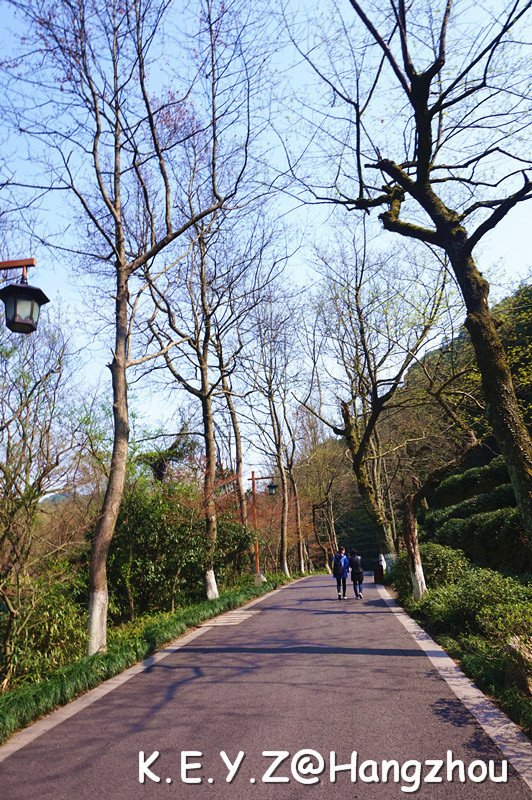 上午的行程是到九溪徒步,从之江路口的九溪入口进入,步行将近6公里,就可以到达龙井。今天天气依然很好,九溪的入口围绕着许多来徒步的游客,还有许多健步团体,我们赶紧超过他们往里走去。