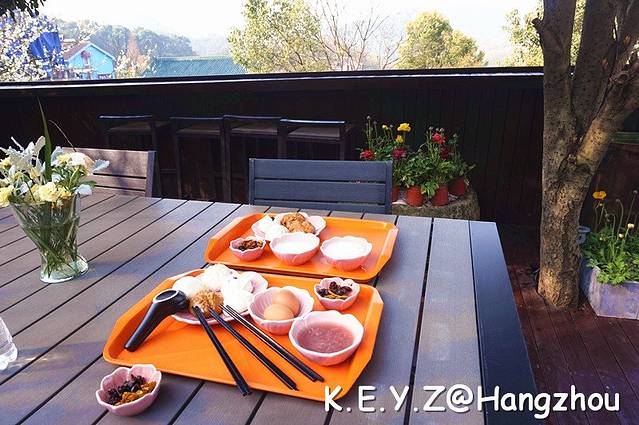 我们订的民宿在虎跑路四眼井,由于限行,我们不得不在杭州动物园下车,自己步行过去。民宿在一个高高的小山坡上,上去真有些费劲,不过风景确实不错。