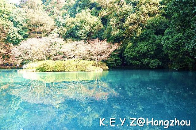 不到一个小时,便走到了九溪中段的景点,九溪烟树。如今水中的树木尚未变红,没有秋季漂亮,但是阳光的映衬下还是很美,可惜水潭显得有点浑浊,让人有些遗憾。