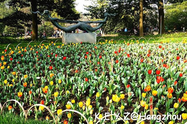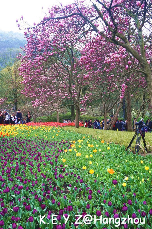 走到公园中心,人渐渐多了起来,有点举步维艰的感觉,我们也只能随波逐流,在花丛中随着人潮涌动。