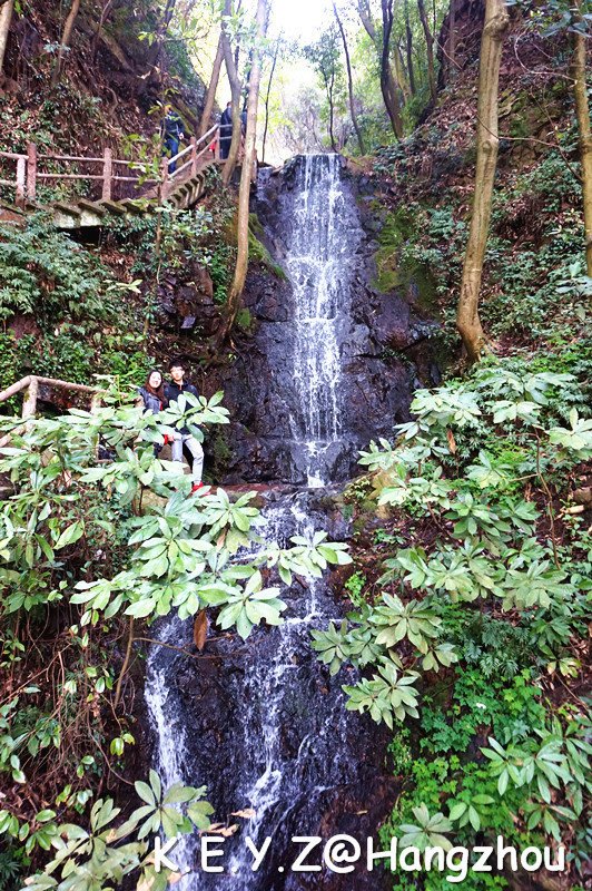 绕着不大的水潭走一圈,发现林中藏着小瀑布,留个游客照~