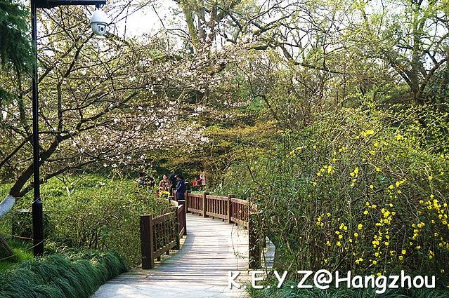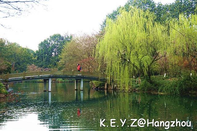 沿着曲折的木栈道,我们走走停停,在每一座小桥和亭子中流连,在桃红柳绿中穿梭,这才应该是西湖游览的正确方式,人少景美,无忧无虑。