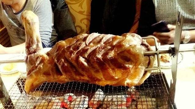 一共11人,原本12人赠一只烤全羊,小李也赠送了我们一只