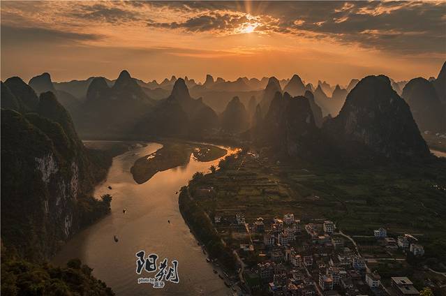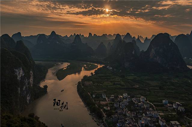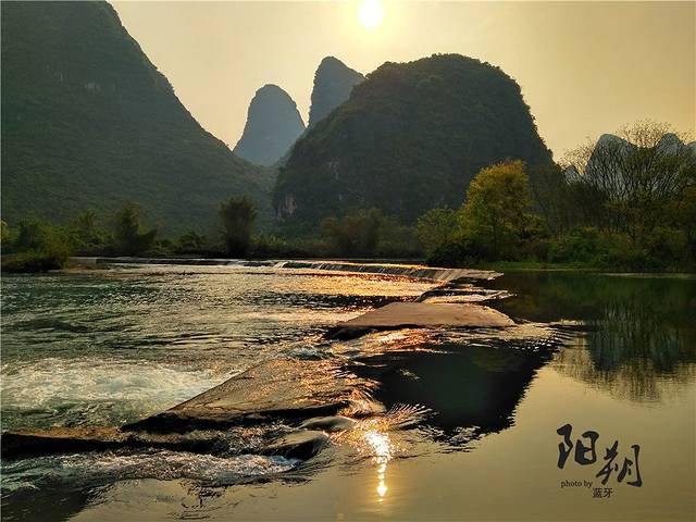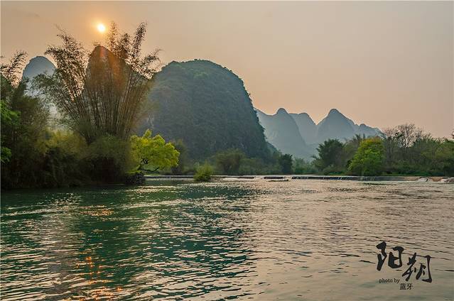 站在亭子旁的石头上,则可将漓江尽收眼底。夕阳从江面上滑落,余晖冲破云层,越过群山,洒落在江面上,光芒万丈。人家大多觉得到漓江就是要来个亲密接触,去泛舟江上。