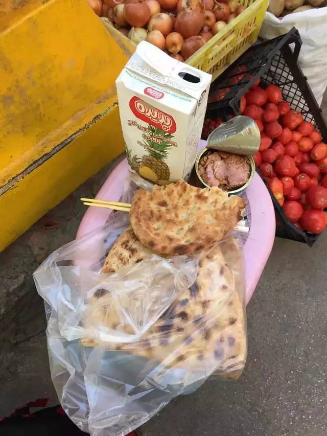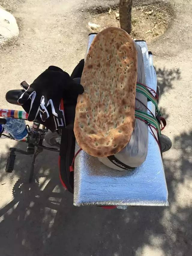 路旁有很多举着牌子兜售玉米和水果的商贩,我在路边一家馕饼店买了一张馕饼,刚出火坑,还热乎着,很好吃,松软中散发着麦子的香气。老板和儿子对我有些好奇,逢人便说我是从中国骑车来的。一个路过买馕的大叔从车里拿出一盒吃的送给我,临走时,老板为我重新灌满了饮用水。