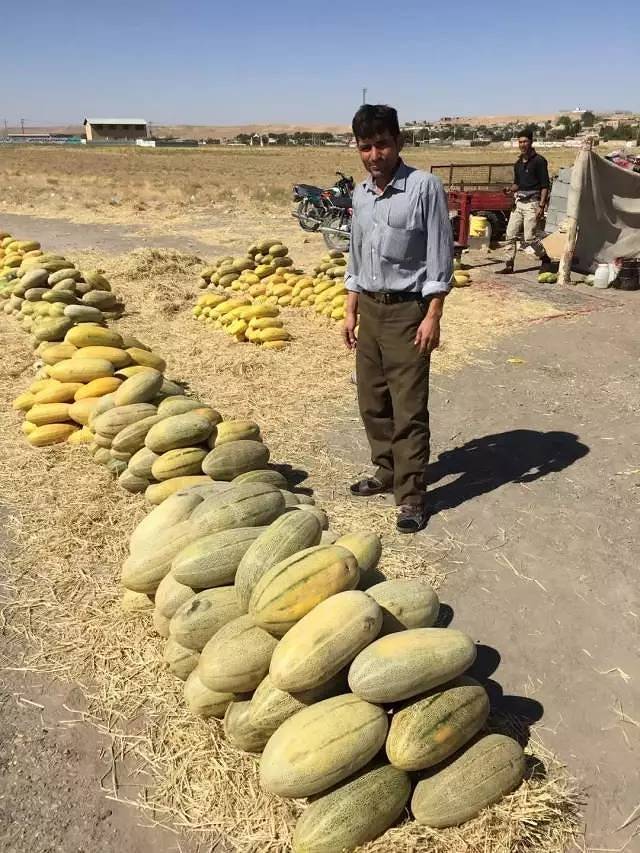 去往马什哈德沿途的村镇开始变多,中午我在路边的一个卖甜瓜的摊位被叫停下来,瓜农挑了一个瓜送给我,我站在路边大口吃着瓜。