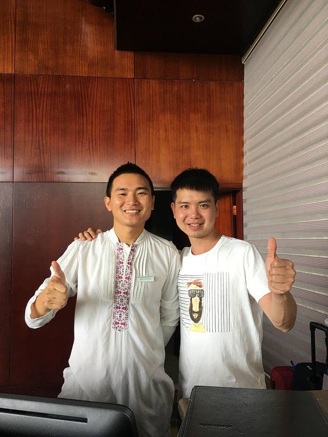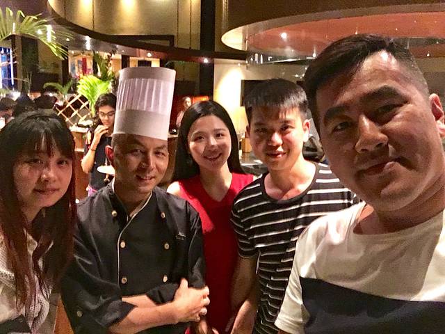 回到酒店已经18:30了,赶紧洗洗沾满黄土的脸,跟莉娜和Bingo约好一起吃晚餐,依然还是180°餐厅,还和梅州大厨合照了哟!