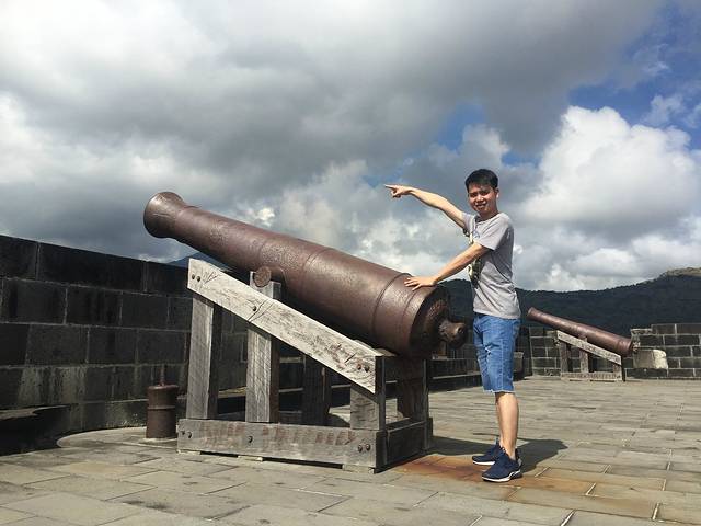 路易港是毛球的首都,炮台山就是挨在旁边的一座小山,在上面可以俯瞰整个路易港的城市面貌。黑人司机带我们北部景点游的第一站,从酒店出发,到炮台山40分钟。炮台山,其实也真没什么好看的,地方比较小,有几座大炮在那摆着,但是能俯瞰整个路易港的建筑面积,楼房都是矮矮的,三面环山,最远处是蓝白的海天一线交接,看着有一种跟安逸的感觉。