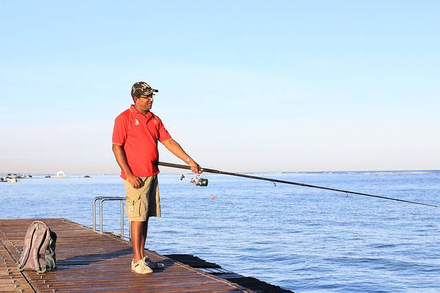一大早就有人在钓鱼。毛球的人很喜欢钓鱼,基本到哪,都能看到垂钓人的身影。