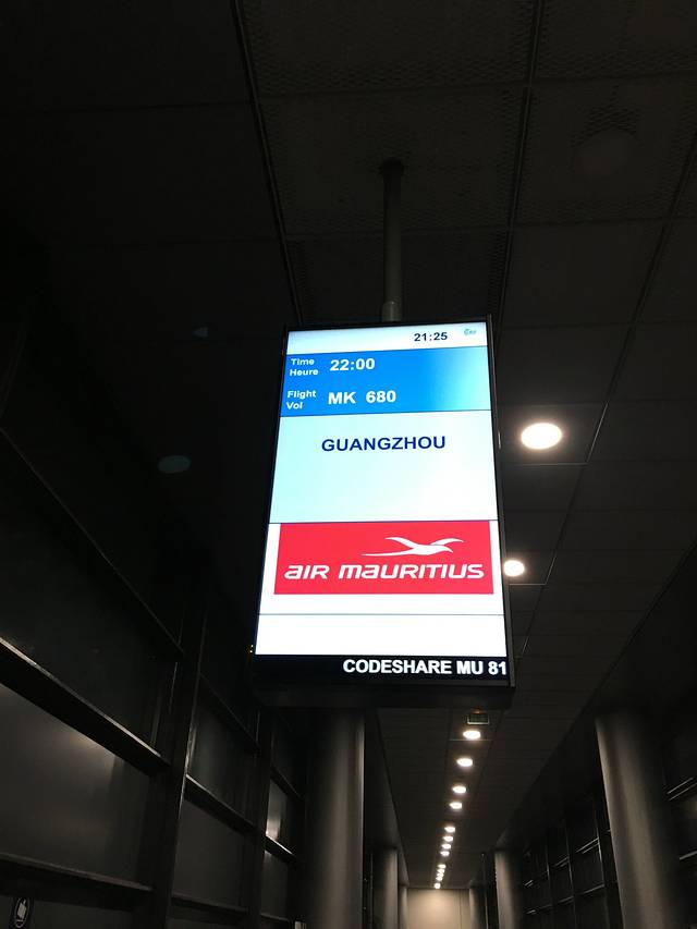 出发地:广州白云国际机场→→→目的地:毛里求斯国际机场