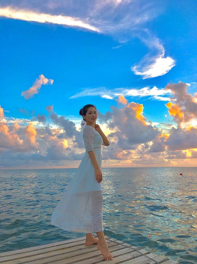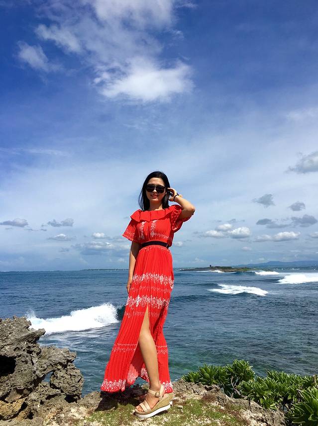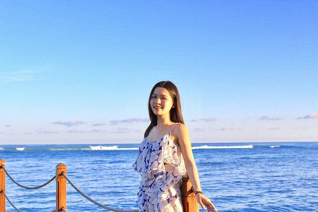 贴心导游sky,看我一个人无聊,给我拍了几张照片,技术超级不错啊!还有,红裙子跟海景真的很配哦!