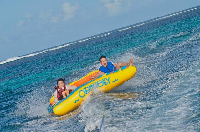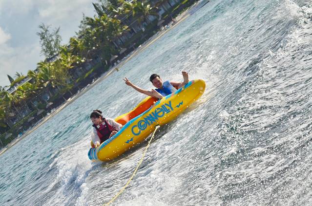一艘快艇拖着我们在海上甩,甩,狂甩!上岸的时候都晕得一时找不到边了,但是好刺激,好玩!