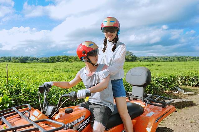 结束蓝湾行程,一看时间已经是下午2:00了,我们午饭都来不及吃就赶紧去南部四驱车的地点。约了下午3点的四驱车,我们2:45去到,工作人员告诉我们下午只有我们一对人,说好的浩浩荡荡的四驱车队伍变成一台教练车,一台游玩车,当时听着都觉得没意思了。小黑教练好看看出了我们的顾虑,说出一句,不用担心,很好玩,很刺激的,你们会喜欢的!