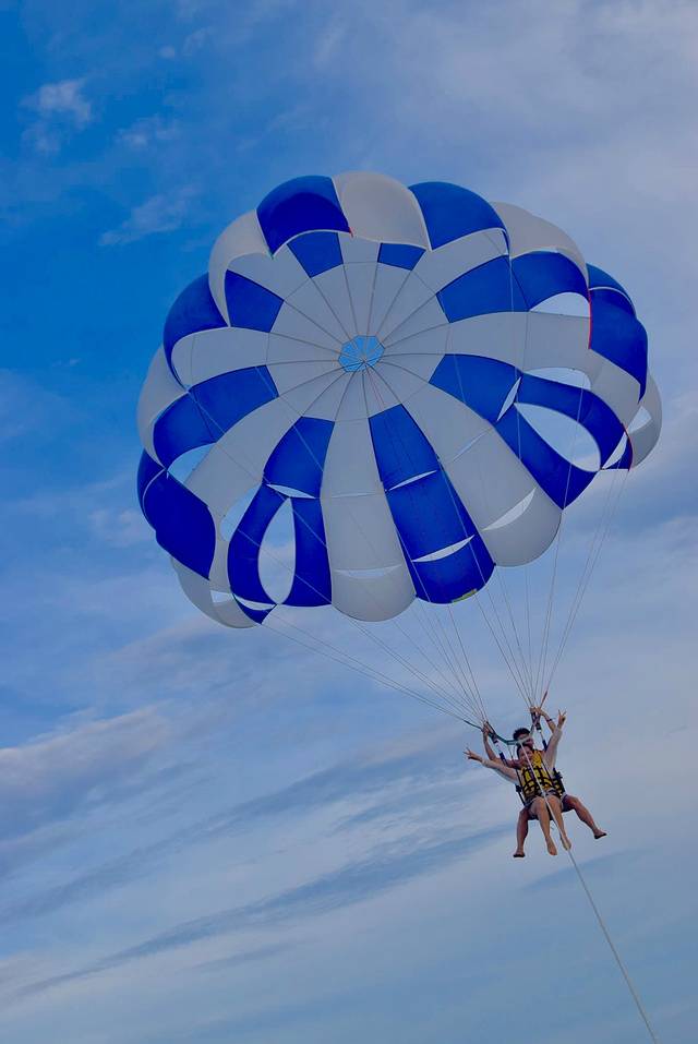 乘坐快艇去到海中央,然后小黑把我们当人肉风筝一样慢慢放线,升到半空,过程很平稳,很安全,在半空俯瞰海景,棒极了!