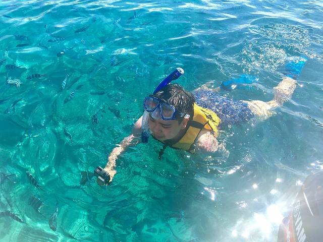 好多鱼好多鱼,大松同学玩得可开心了,不能下水的我在快艇上静静地看着他玩(求此处我的心里阴影面积)