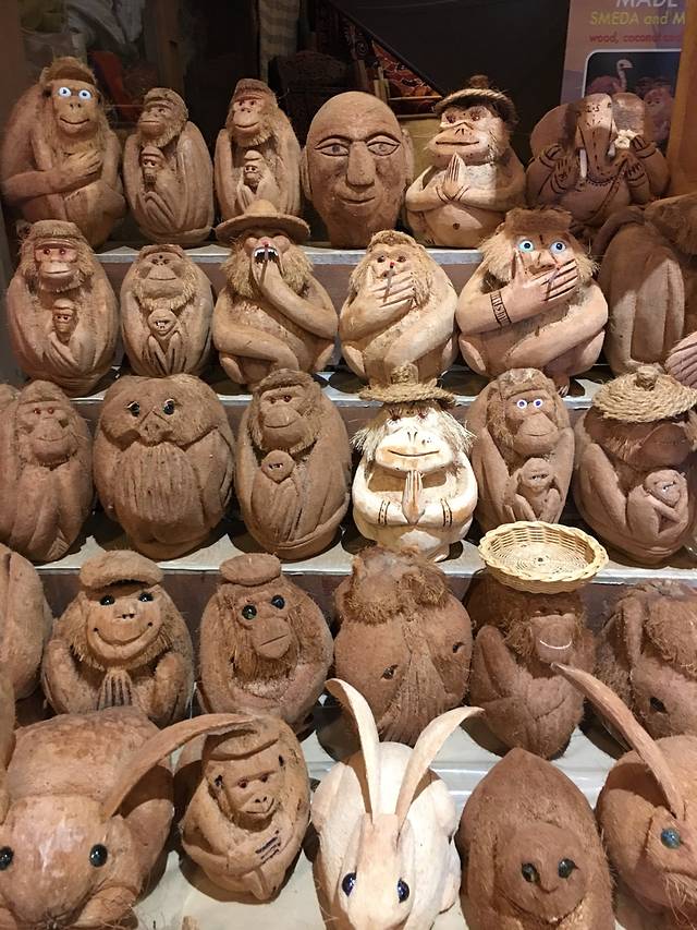 这是在蔻丹广场看到的摆设品,都是用椰子外壳的丝做的,价格1200-5500卢比不等。
