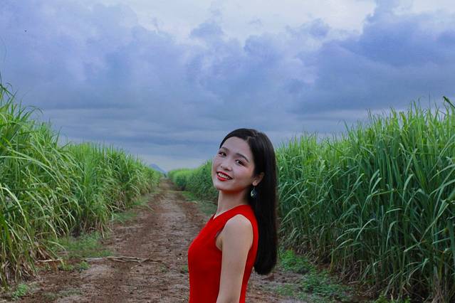 今天的太阳不太猛烈,还略略阴凉阴凉的,换套衣服就去酒店附近的甘蔗地咯!