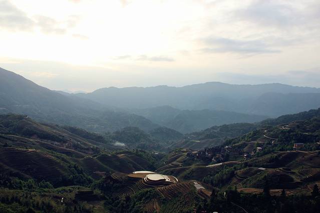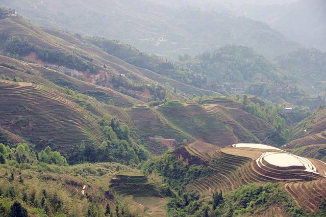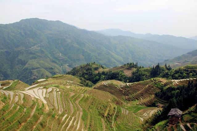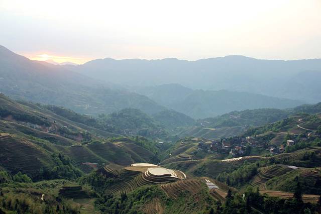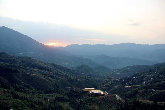 龙脊梯田位于广西龙胜各族自治县和平乡平安村龙脊山,距桂林市80公里,有着“梯田世界之冠”的美誉。我们去的时候才开始灌水,要是再晚些时候去,等水都灌完,有阳光一反射,那照的会更美!