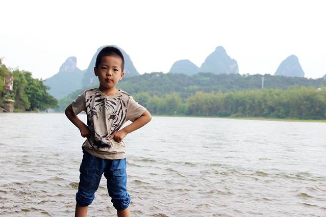 等到宝贝们醒了,就去漓江边玩玩水,江边本地人不少,还有烧烤的。虽没入夏,水却不凉,但水有点急,岸边还有青苔,带孩子玩儿的可要小心了…