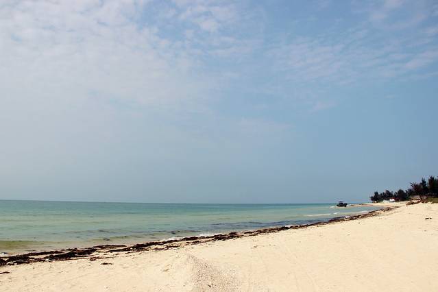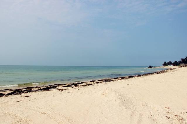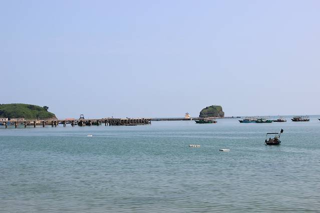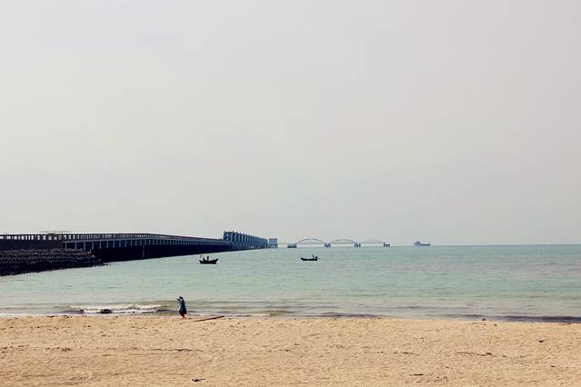 中石化原油码头:贝壳沙滩的旁边,是一座蓝桥,向海里延伸3.5公里,非常壮观,但已经废弃,现在禁止进入。