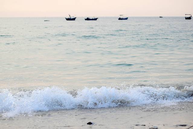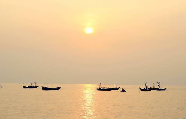 石螺口海滩:珊瑚碎片较多,观日落不错。
