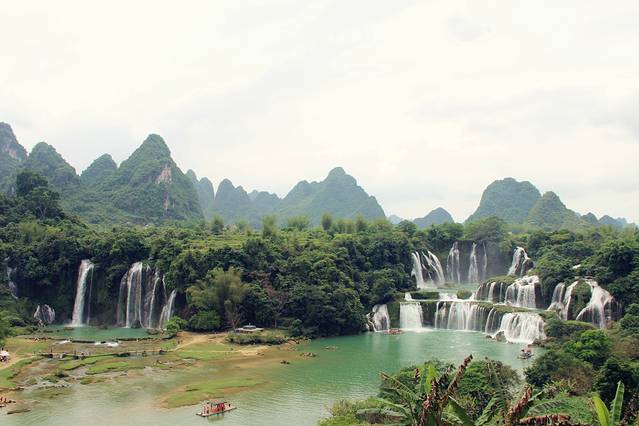 1. 德天瀑布:亚洲第一大跨国瀑布,世界第四大瀑布,与越南的板约瀑布连为一体,的确很壮光,从南宁过去要三个多小时,景区不大,游玩可以去中越边境逛逛,就看个人觉得值不值了。我直接报的当地纯玩团,提前在网上订的。