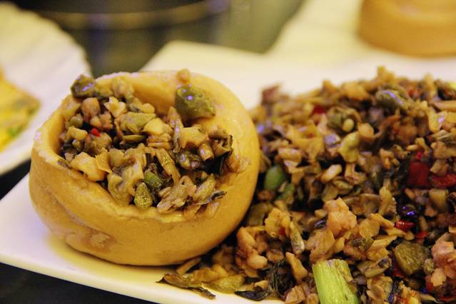 套餐里还有凉拌皮蛋(这个拌得不错)、手撕包菜、车螺芥菜汤,我们还点了个蕃茄炒蛋,量还是挺大的,最后都剩菜了。