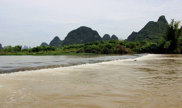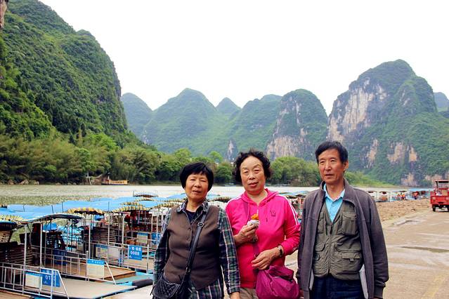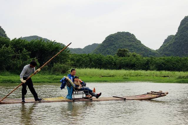 1. 漓江竹筏漂流:推荐,但1.2米以下的小朋友不能上筏,所以干脆我们一家四口就都不上了,让老人去玩。有冠岩-兴坪、杨堤-兴坪、杨堤-九马画山-兴坪可以选。