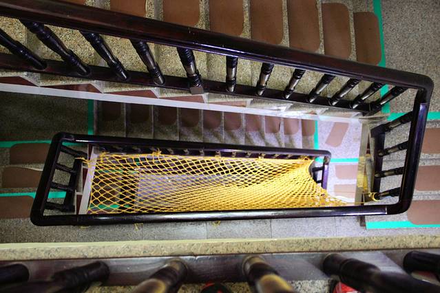 客栈楼梯天井都有护网,每阶楼梯都贴了防滑垫,每层都有温馨提示