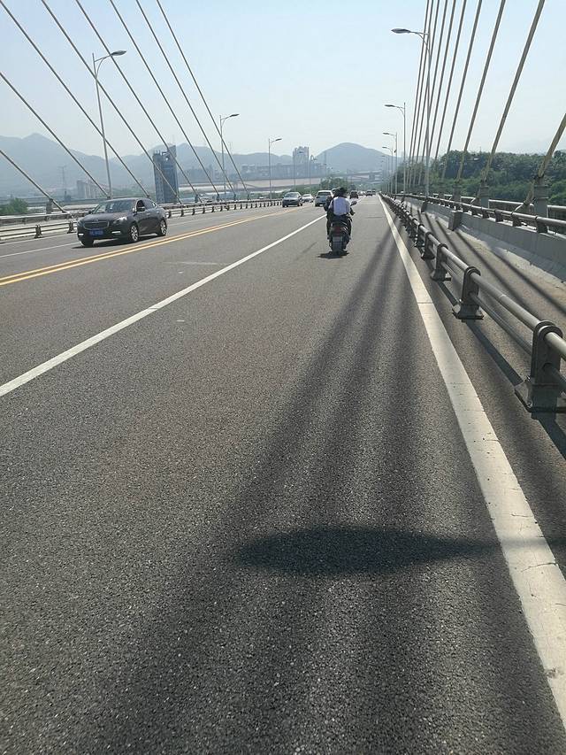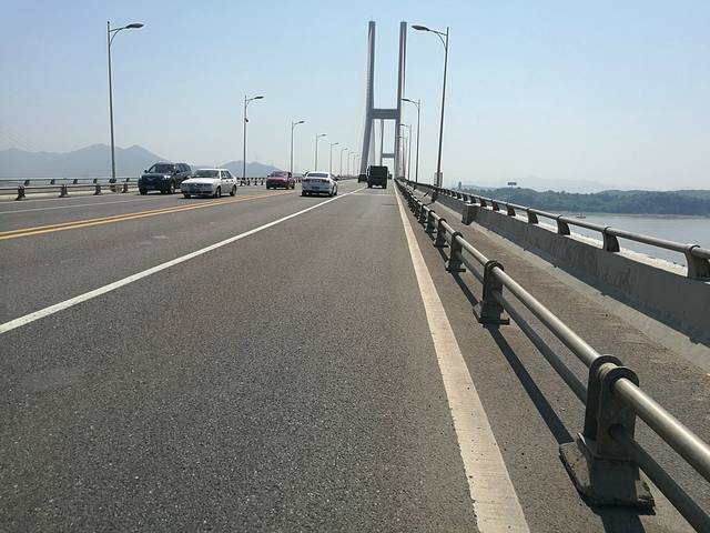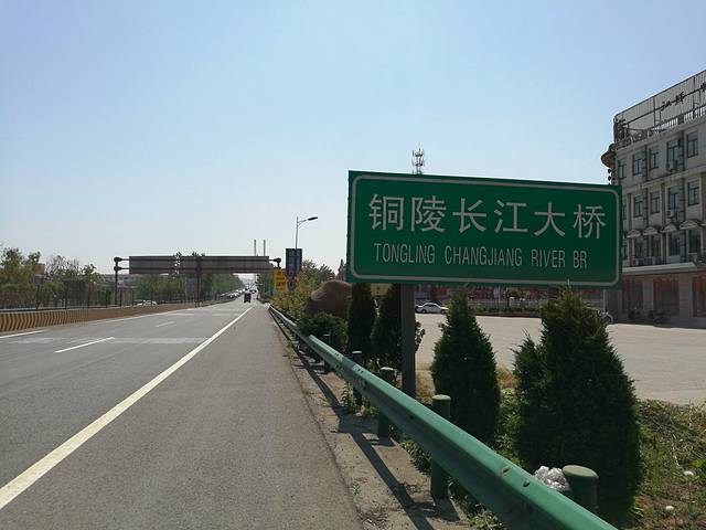 独自骑了三十多公里就到了铜陵长江大桥,这一段是混合车道,车辆比较多