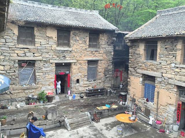 终于,前面有菜地了,我想老董家应该不远了。从岔路上来一对男女,从山东自驾车过来玩,由于是岔路口大家都奔向老董家。路边有一座很古老的小桥,大树下一段残墙,后来老董告诉我,小桥就是古道上的,这残墙是当时的驿站。