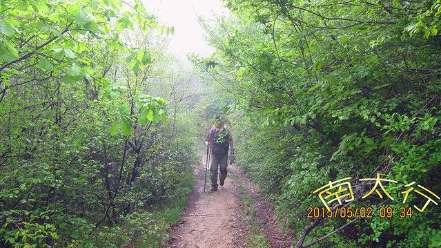 在铁匠庄村头的小路上大巴车停下来,路边小商店可以补给,墙上写着停车住宿,路边的小厕所散发着浓浓的乡村气息。我们收拾好往里走,路旁的麦子已经抽穗,今天的太阳比较羞涩,天气阴沉着,我们沿着小路走着,有的驴友背着重装准备扎营,我的包有三天的食物和两天的水,比平日一天穿越的重好多。加之30日一晚的大巴长途奔袭,休息了几个小时,刚开始就给自己加油,晚上可以好好休息。