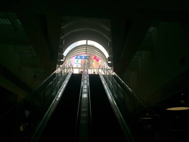 地铁站一出来到大悦城,整个扶梯都是粉红粉红的...