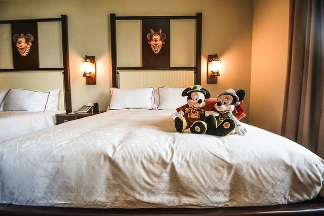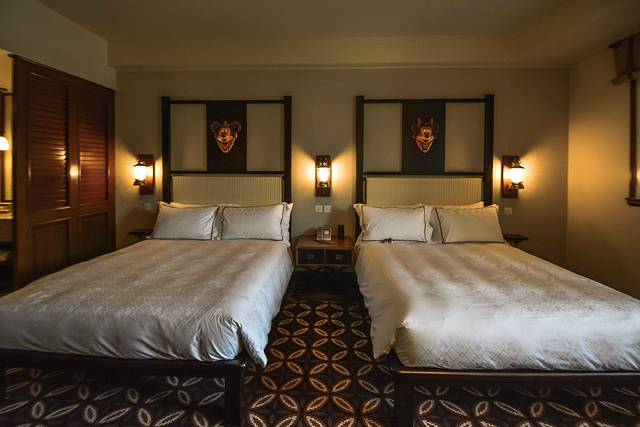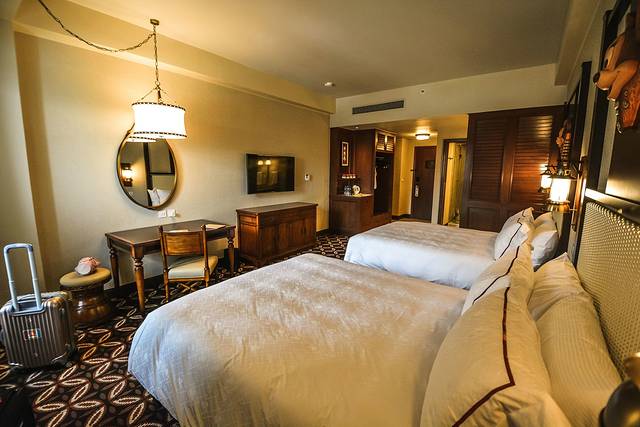 拥有750间客房的迪士尼探索家度假酒店,采用亚洲、大洋洲、南美洲和非洲四个不同地区为设计主题,每个主题的翼楼走廊的墙壁图案和灯饰各具特色,甚至不同主题客房床头板上的米奇老鼠和米妮老鼠也风格不同。在廊中漫步,体验穿梭四洲的浪漫之旅。每间客房提供两张双人床,而部分海景客房更可以透过飘窗俯瞰外面的海景。晌午过后,柔和的阳光透过窗户洒落在身上,透过飘窗眺望海景,一切尽在不言中。你说,这是你住过的最舒适的酒店。