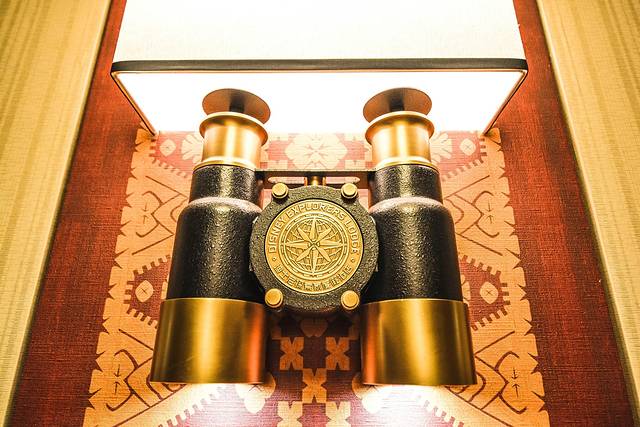 酒店六楼墙壁上迪士尼朋友皮影戏栩栩如生,丛林商店独特的行李箱造型桌子,还有那房间外走廊望远镜形状的灯饰酒店处处隐藏的米奇老鼠,在墙上、地砖上、电梯里、地图里,等着我们来发掘哦!猜不到转角又有什么惊喜?