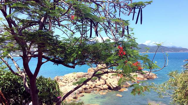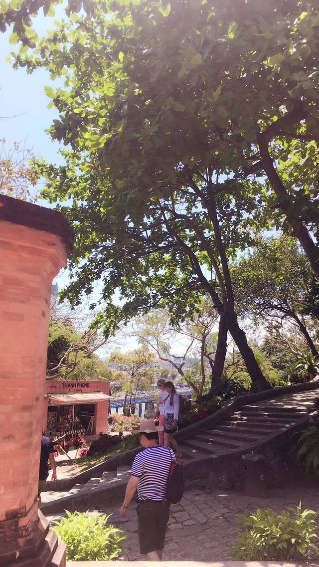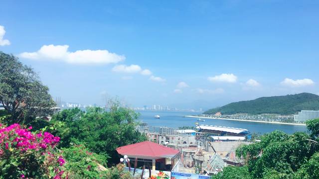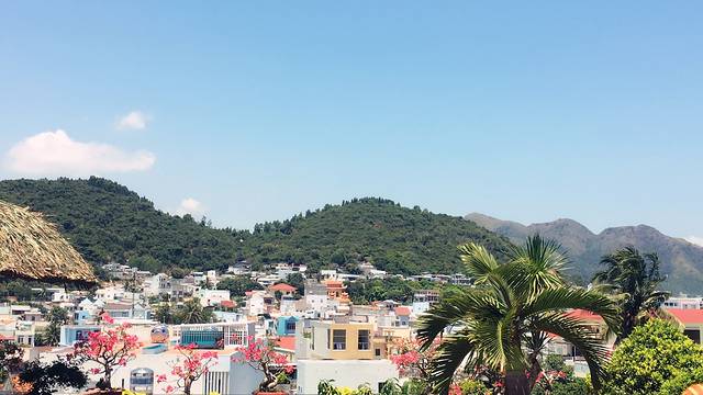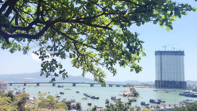婆那加占婆塔的景色很不错,树荫处,可以眺望远处的渔船。虽然杂草挡住了部分视线,但依稀可以看到船只出海的壮观景象。可以迎着海岸线风吹来的方向,就让丝丝凉意驱走因燥热感萌生的抓狂思绪。背面处,可以很深切的体会海滨小城的缩略图,拥挤的房屋鳞次栉比的在眼前,与海边的蓝色交相呼应…忽然想起了邓丽君的《小城故事》…