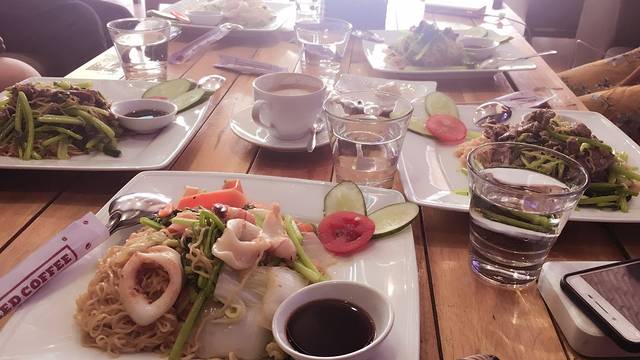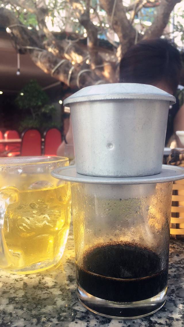 在钟屿石岬角可以品味越南当地的滴漏咖啡,一般旅行团的游客会比较多在那里品尝。避开了旅行团的人多,闹腾,我们到了当地一家Iced coffee吃午饭。其实Iced coffee离钟屿石岬角有段距离,和司机先生也沟通不畅,但司机很有耐心,也没有说走了回头路给我们脸色看。我们邀请了司机先生一同中饭。