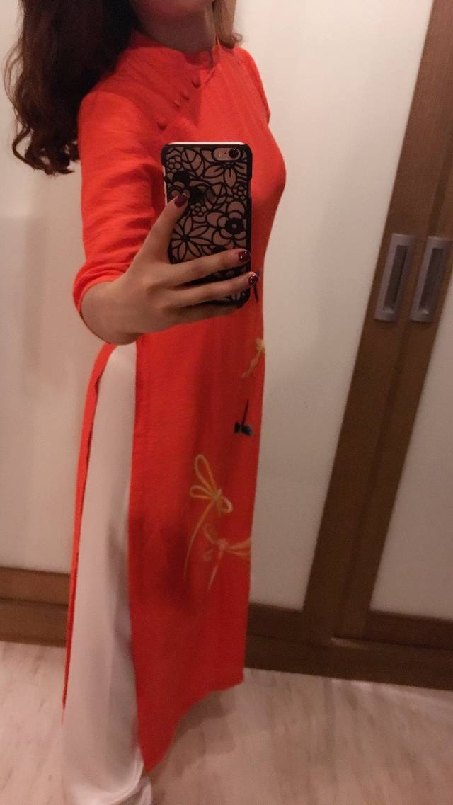 我在center入了一件橘色的奥黛,价格231万VND,折合RMB大约在700左右,在当地来说算是一件奢侈品了。