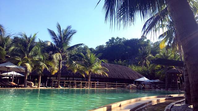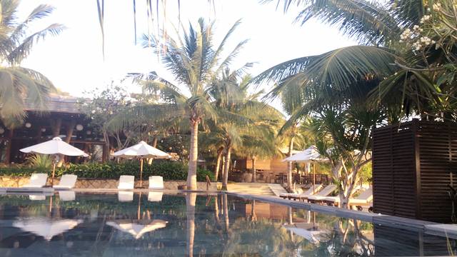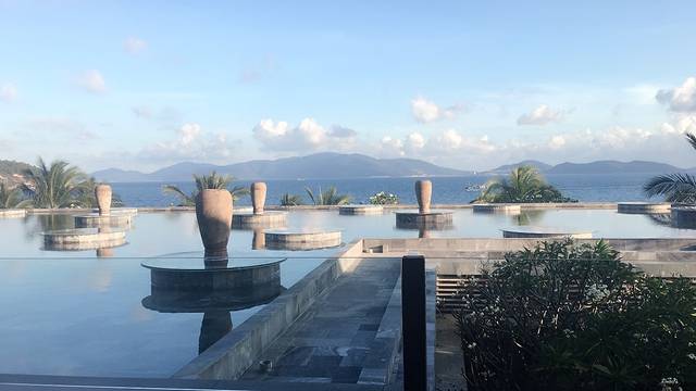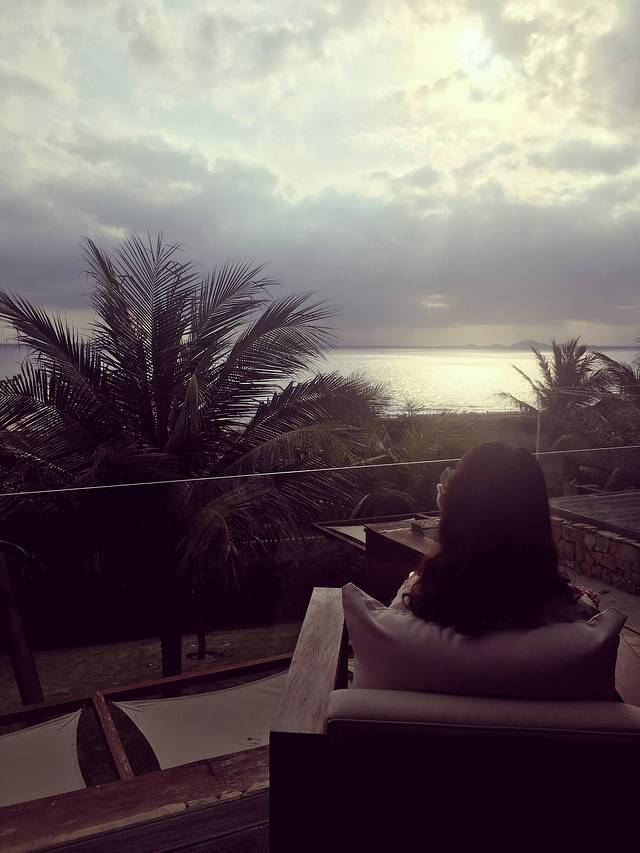 看椰影倒映着的酒店全景,那一刻,毫无想法,就想就这样慢慢地…慢慢地…等待着日出升起,日落而息…