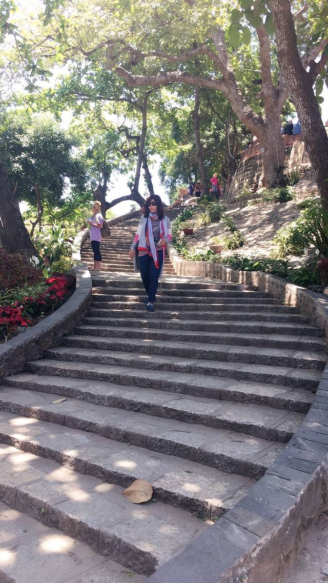 沿着台阶拾级而上,可以看见散落的鸡蛋花,随性自由…