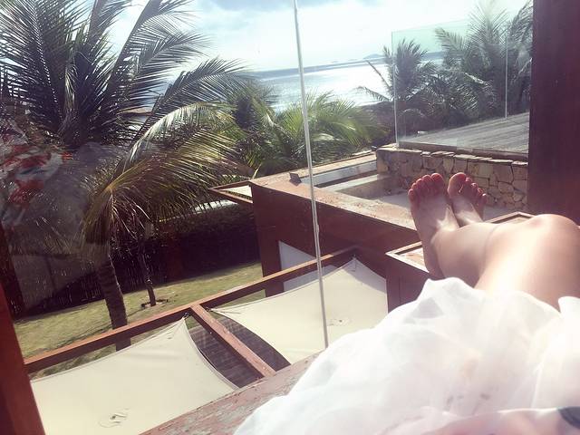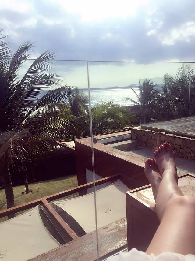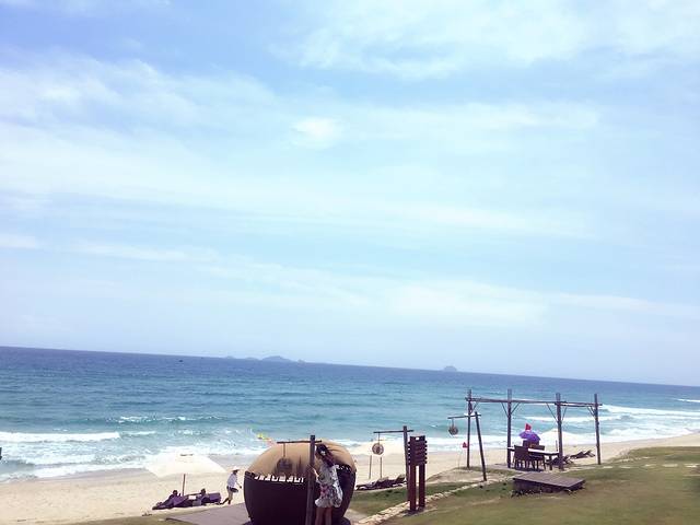 早饭🔚后,正好在酒店前面的沙滩休息。9点半左右,太阳已经很烈了。稀稀俩俩的人群在晒着日光浴,摘掉墨镜,完全睁不开眼睛,却又不是炎热的透不过气来,海风徐徐…