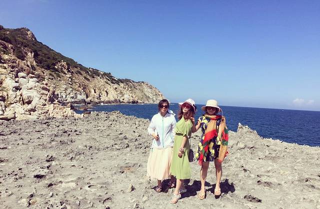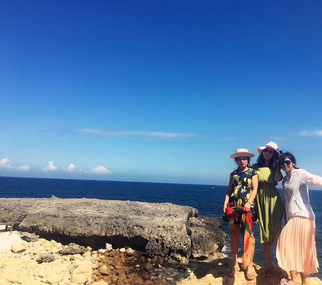 海边,吹着海风,看着天空和大朵的云,等待海浪冲出礁石的瞬间,满天飞溅的浪花,扑面而来的水汽,拍打礁石的声音,不必说话,只需拉着她的手,就是最浪漫的告白。只可惜,我们只有三女子相互告白了…