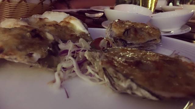 烤生蚝,50000VND一只,算比较划算。生蚝生吃有些人还是后怕的,芝士的相对来说可以减轻生蚝本身那一股海产味,让芝士的浓郁覆盖掉生蚝的腥味。