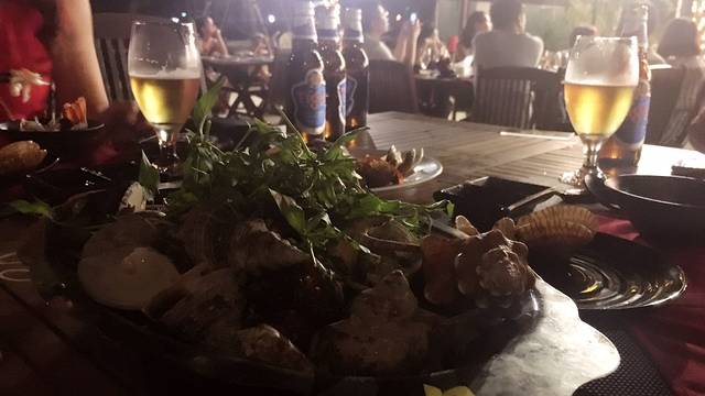 Costa seafood的环境在芽庄也算是上乘的,室内灯火通明,装修简约大气,室外虽然幽暗,但好在烛光可以将浪漫气息蔓延,正对着沙滩,丝丝凉意,看着马路上过往的车辆和行人,晚餐甚合我意。实在觉得这样的兼容很难以做到,但costa seafood却结合得相当的妙!